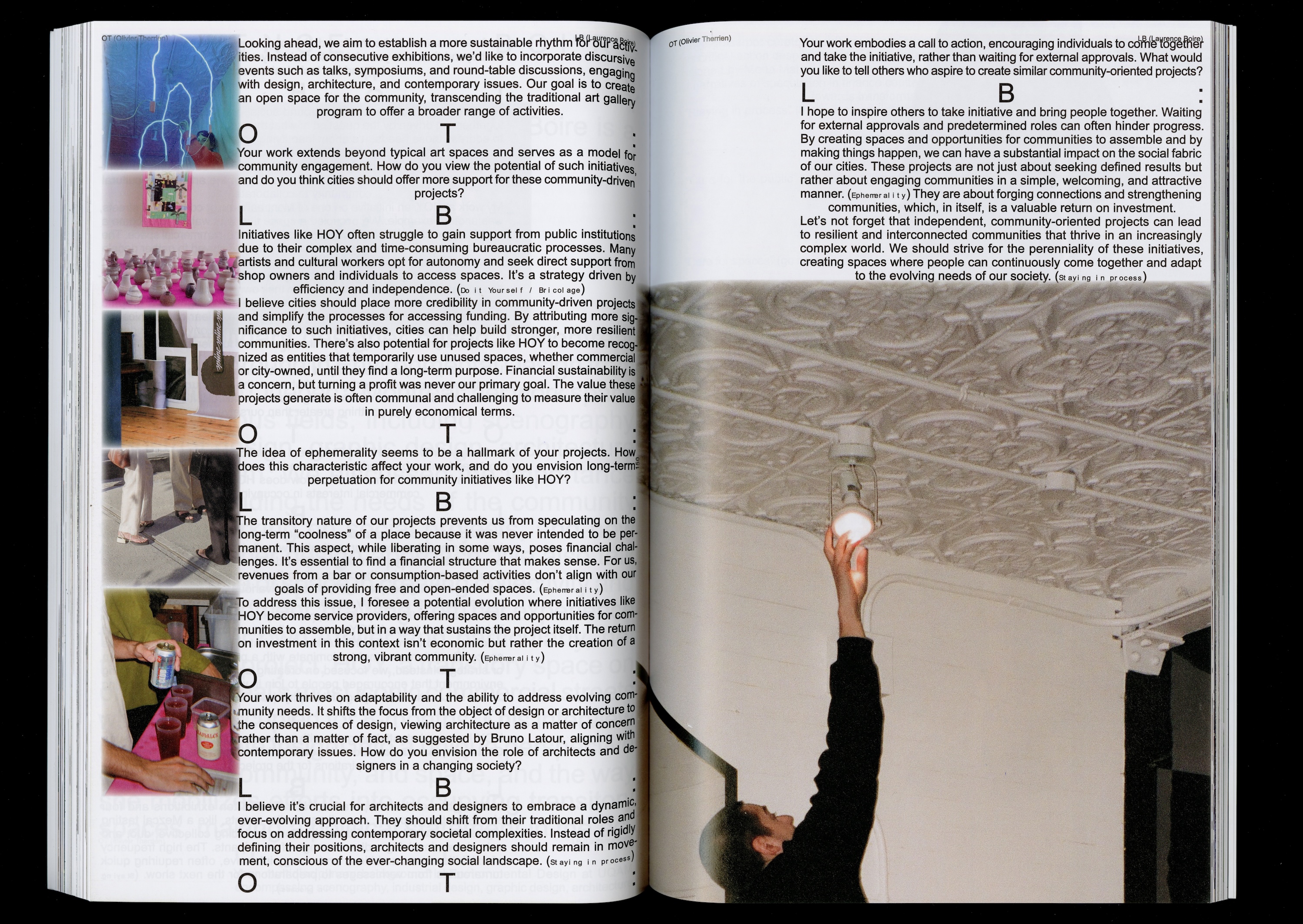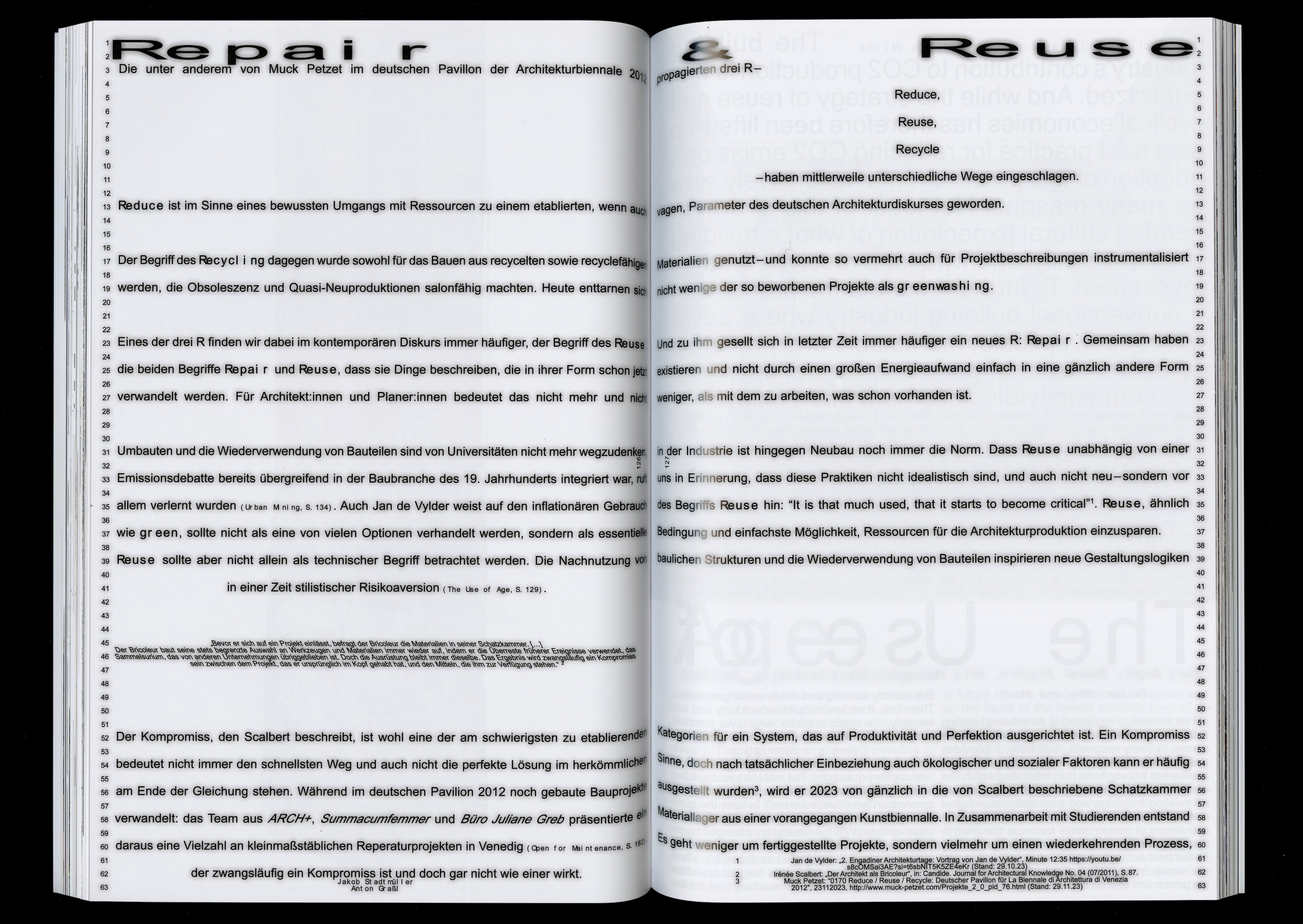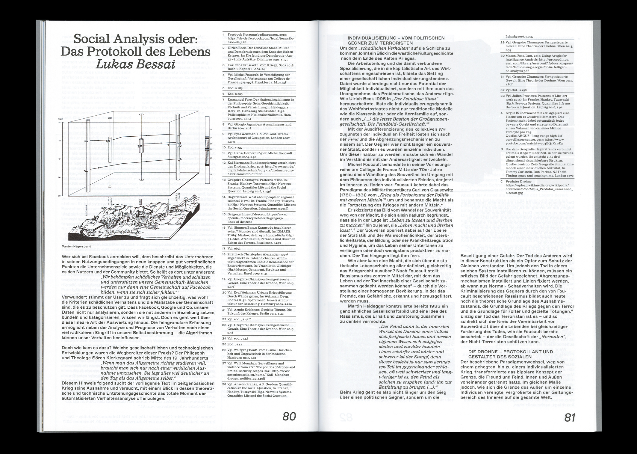 "'We reject' ! 'We denounce' ! 'We despise'! 'We are against'!" / "Wenn das Vitamin B Niacin im Körper des Menschen [.] das körpereigene Adrenalin oxidiert, kommt es zur Bildung schizophrener Symptome. Als hilfreich wird die Einnahme des Antioxidanten Vitamin C empfohlen." | "Suddenly, there were three shots from the police and the entire conglomerate of bodies were in wild motion trying to get out of the target line, whilst hustling to not suffocate from the teargas." / "The demolitions sparked large mobilizations and protests demanding the resignation of city officials, and the largest protest in mid-2016 drew an estimated 25 000 people." / "Zurück bleibt ein Schuttberg ohne Identität, Staub, Dreck, Chaos und Unübersichtlichkeit." / "The present seems to ecstatically run after tomorrow, as current design basks in its own "futureness", all while the future is perpetually happening in the immediate present." /"The head must be free, not thinking about what is or will happen afterwards." /"[.] it was at night that a sense of excitement arose, and uncommon events could take place as the square was lit in a million pulsating colours."