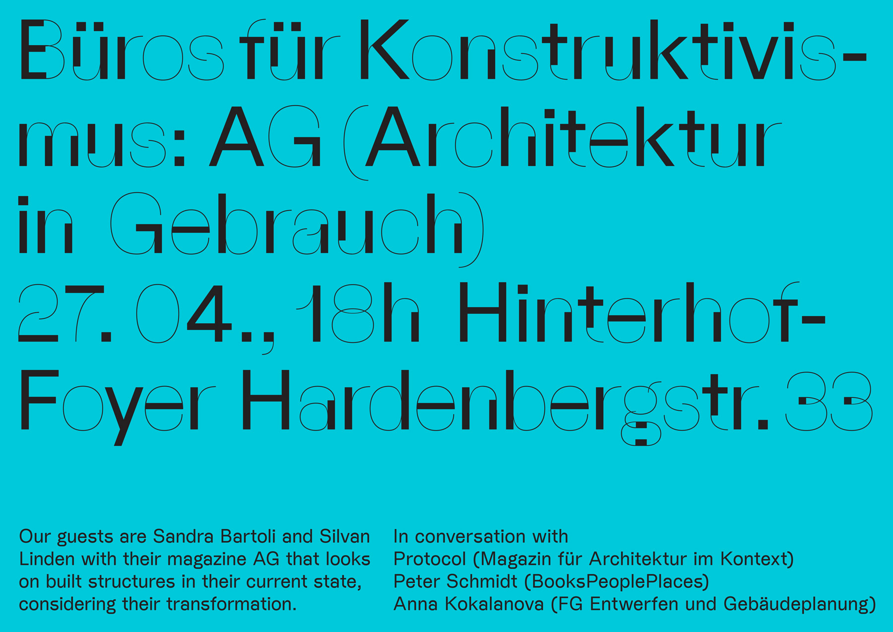 (DE) Magazin für Architektur im Kontext, Universität der Künste Berlin. Schick uns deine sich kreuzenden Gedanken, Gedichte, Fragestellungen, Fotografien, Einfälle, Unfälle oder Zufälle als Abstrakt mit 300 Wörtern.