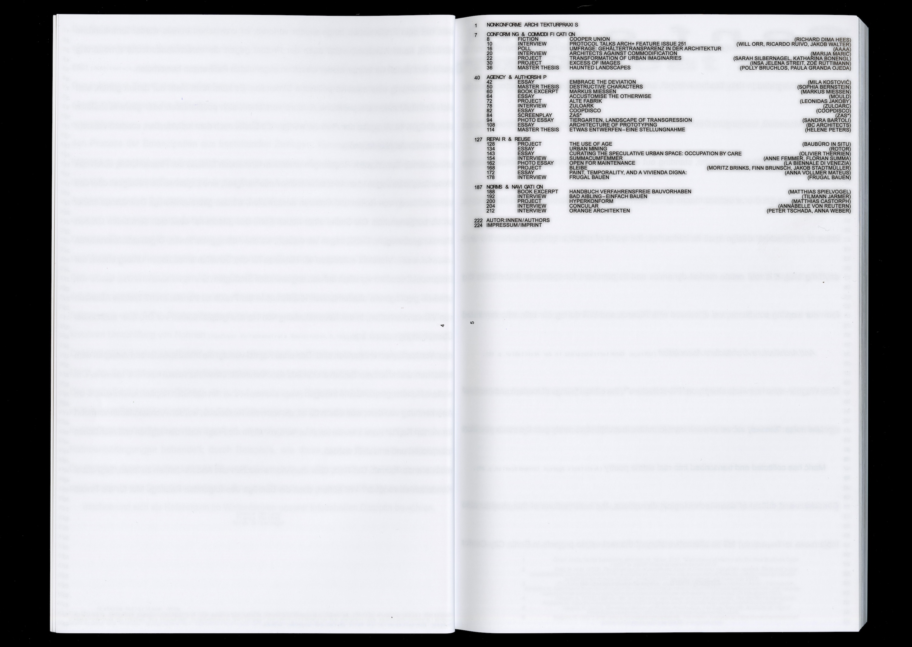 Wo Konformität – die Übereinstimmung mit der Norm, der Mehrheitsmeinung, dem business as usual – endet, wird es ungemütlich: dort, wo Akteure anecken, wo sie Normen eines gesellschaftlichen, politischen oder auch technischen Kontexten hinterfragen, sind sie mit Strapazen, Mühsalen und Widerstand konfrontiert. Konform sind wir daher nicht nur aufgrund von äußerem Druck, sondern auch aus einem inneren Bedürfnis nach Zugehörigkeit. Nonkonformität wird hingegen aus eigenständigen Entscheidungen geformt, die von der Mehrheitsmeinung abweichen. Und die Mehrheitsmeinung in der Baubranche ist der Markt. Der Architekturdiskurs unterliegt dabei dem Wandel der Gezeiten: Das, was eben noch nonkonform war, hat sein Präfix schon lange wieder verloren, ist inzwischen bereits wieder form-konform oder norm-konform. Innerhalb einer müden Disziplin, die sich ständig selbst neu zu erfinden versucht, kann Nonkonformität auch der Protest gegen die verschwenderische Erneuerung sein. Alles das, was nicht in diejenigen standardisierten Schubladen passt, aus denen wir immer wieder dieselben abgenutzten Referenzen hervorholen. Die Beiträge durchzieht eine kritische Bewusstseinwerdung, ein Prozess des Umdenkens und eine motivierende Tatkraft. Der Reiz, über das Anders-machen und Anders-denken zu lesen, liegt dabei auch immer in der Spekulation über die Zukunft. Sind die vorgestellten Strategien in ähnlichen Kontexten anwendbar? Wir hoffen, dass die Beiträge Mut für die Praxis machen und sich als Referenzen im Weiterdenken unserer krisenhaften Disziplin bewähren.